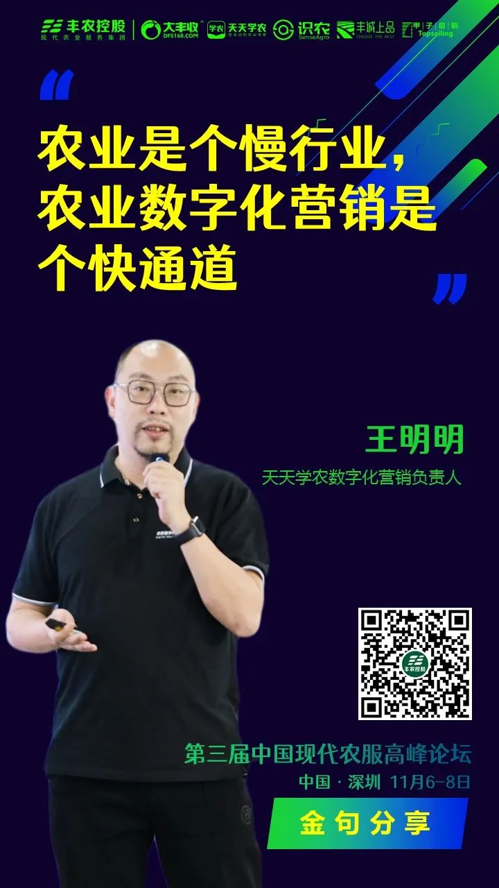 第三届中国现代农服岑岭论坛已经举行到第二天,,,, ,,,,4位嘉宾围绕“农业数字化营销趋势与策论”发演出讲,,,, ,,,,现场金句频出,,,, ,,,,一起往返首下。 。。。。。。