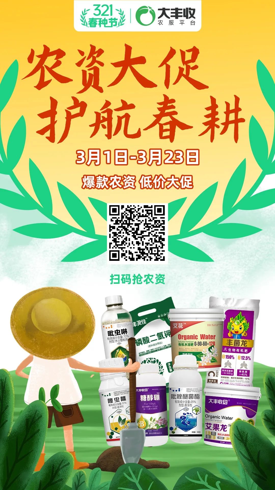大丰收321春种节运动还在举行中,,,,,,,农资商城认真人体现,,,,,,,会继续执行保价政策,,,,,,,切实做好农资供应事情。。。。。。