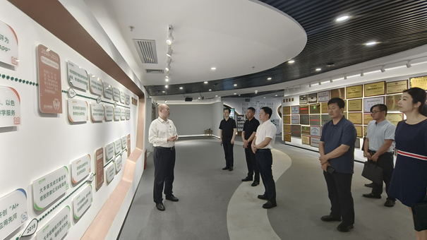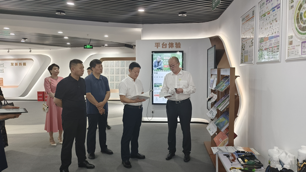 在97国际控股多功效展厅,,,,,,范恒硕向徐涤非一行深度先容97国际控股生长历程、营业模式、声誉奖牌。。。。。。。。作为一家深耕农业的现代农服集团,,,,,,97国际控股的生长模式和履历效果获得徐涤非一行的高度一定。。。。。。。。