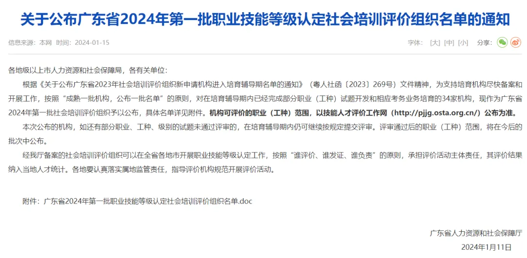 凭证划定,,,,,经广东省人力资源和社会包管厅备案的社会培训评价组织,,,,,可在全省各地市开展职业手艺品级认定事情,,,,,凭证“谁评价、谁发证、谁认真”的原则,,,,,肩负评价运动主体责任,,,,,其评价效果纳入外地人才统计。。。。。经备案的评价组织,,,,,可依据国家职业手艺标准或职业手艺评价规范,,,,,对劳动者的手艺水平举行评价并核发职业手艺品级证书。。。。。职业手艺品级证书可在人力资源和社会包管部官网盘问,,,,,天下规模内通用,,,,,持证职员可享受相关人才激励政策,,,,,例如,,,,,凭证《广东省职业手艺提升津贴治理步伐》相关划定可申请手艺提升津贴等。。。。。